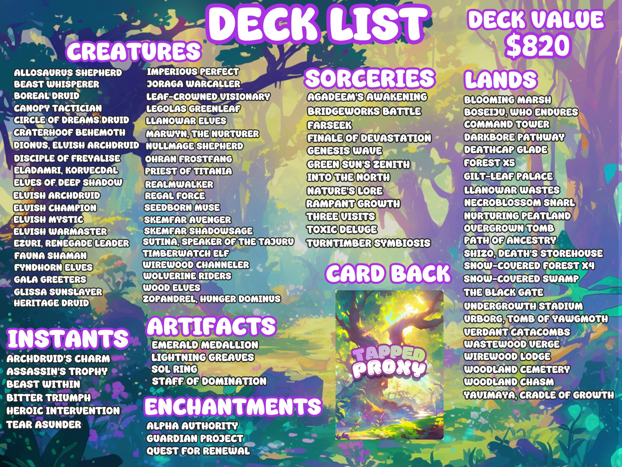 Lathril, Blade of the Elves 100-card Proxy EDH Deck + Tokens